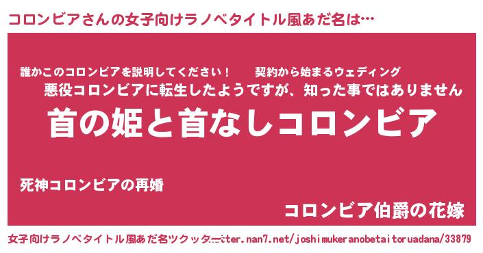 | 胡散臭い通販商品みたいなあだ名 | 『必ず成功するブレスレット…その名も「コロンビア」』 |