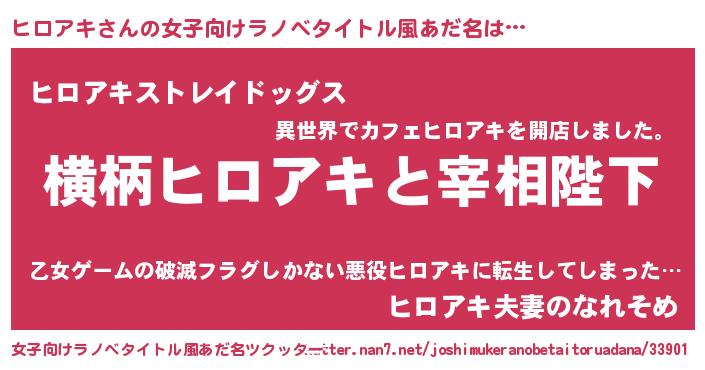 | 意味不明あだ名 | 『自称ヒロアキ』『永久保存ヒロアキ』 |