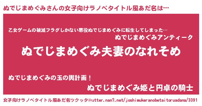 | 男性向けラノベタイトル風あだ名 | 『おまえをオタクにしてやるから、俺をぬでじまめぐみにしてくれ! 』 |