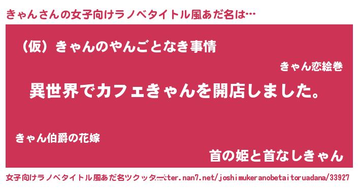 | ヘコむあだ名 | 『きゃん(遠い目)』『きゃにゅー』 |