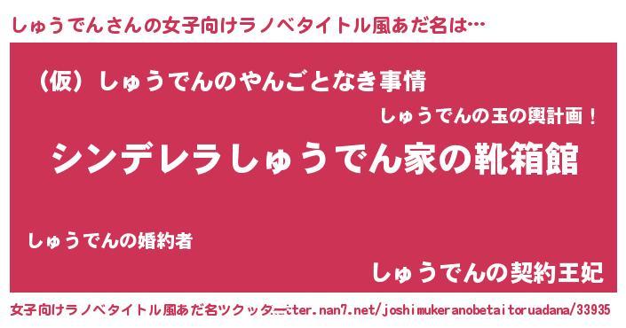 | ヘコむあだ名 | 『しゅふぇ~』『しゅうでん(爆)』 |
