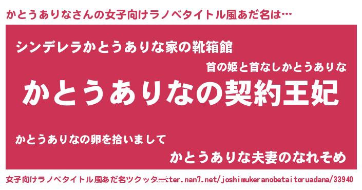 | 男性向けラノベタイトル風あだ名 | 『かとうありなという概念が存在しない退屈な世界 』 |