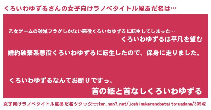 | 胡散臭い通販商品みたいなあだ名 | 『ハリウッド女優が絶賛した100年もののヴィンテージワイン…その名も「くろいわゆずる」』 |