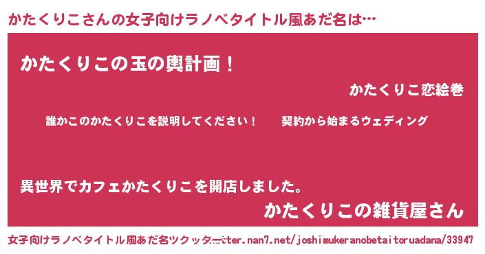 | 男性向けラノベタイトル風あだ名 | 『カタクリコアートオンライン』 |