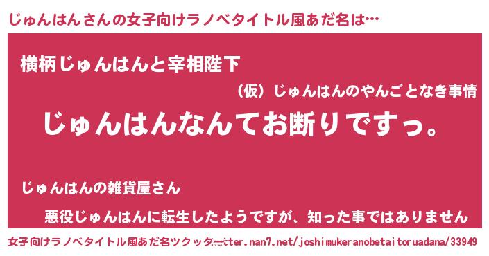 | 男性向けラノベタイトル風あだ名 | 『魔法科高校のじゅんはん』 |