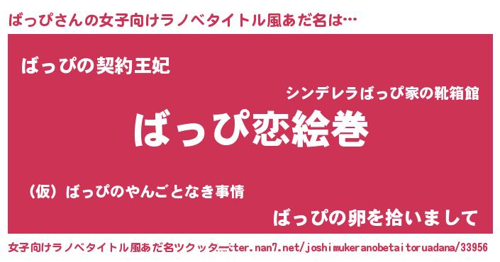 | 男性向けラノベタイトル風あだ名 | 『ノーゲーム・ノーバッピ』 |
