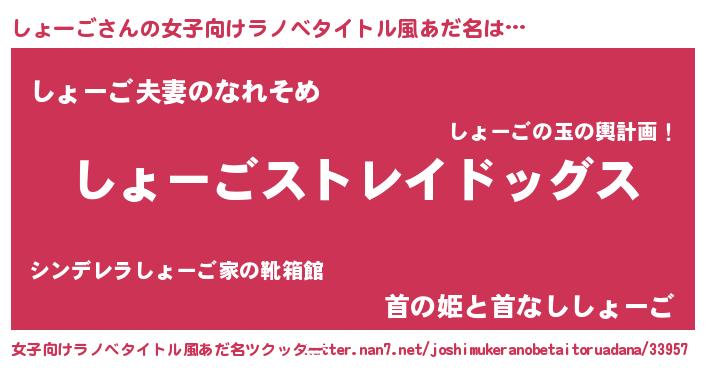| 男性向けラノベタイトル風あだ名 | 『Re:しょーごから始める異世界生活』 |