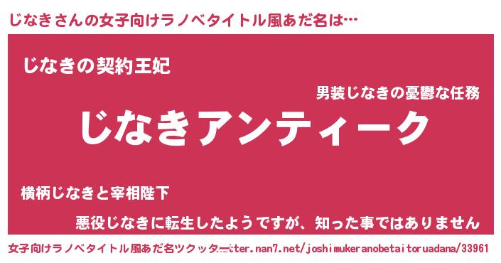 | 男性向けラノベタイトル風あだ名 | 『魔法科高校のじなき』 |