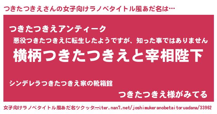 | ヒーロー風カッコイイあだ名 | 『最強戦士ツキタツキエ』『炎刃騎士ツキ』 |