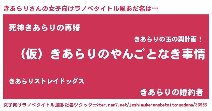 | 男性向けラノベタイトル風あだ名 | 『きあらりの憂鬱』 |