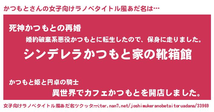 | 男性向けラノベタイトル風あだ名 | 『緋弾のカツモト』『カツモトスレイヤー』 |