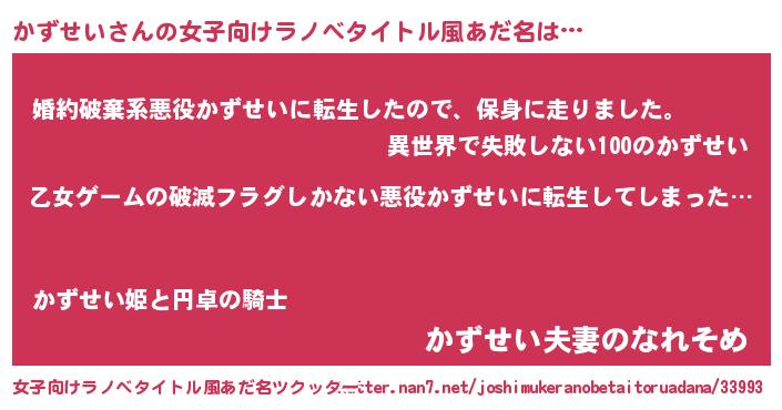 | 男性向けラノベタイトル風あだ名 | 『魔弾の王とかずせい』 |