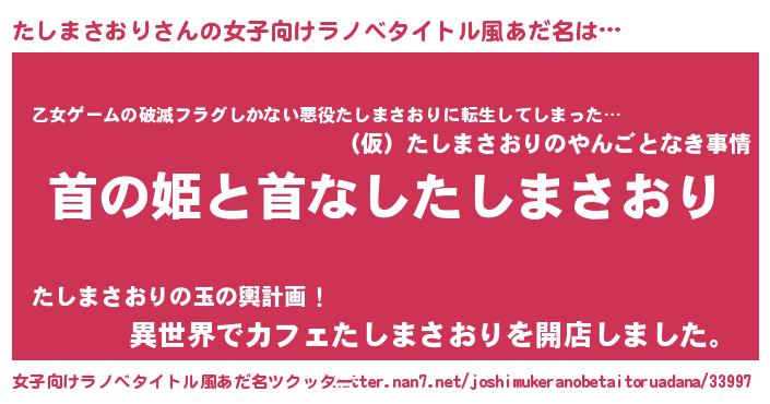 | 男性向けラノベタイトル風あだ名 | 『はたらくたしまさおりさま!』 |