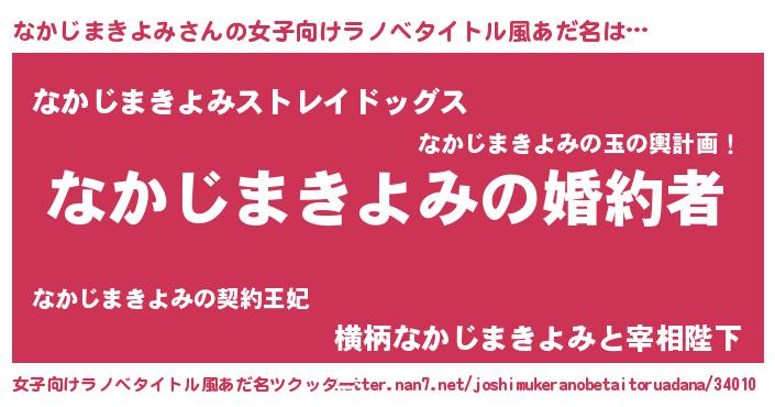 | 胡散臭い通販商品みたいなあだ名 | 『運命の人と巡り会える高級そうな絵画…その名も「なかじまきよみ」』 |