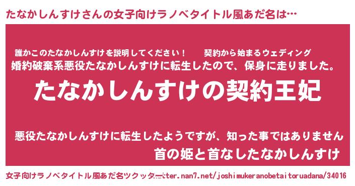 | ヘコむあだ名 | 『たなかしんすけ(笑)』『たなにゅー』 |