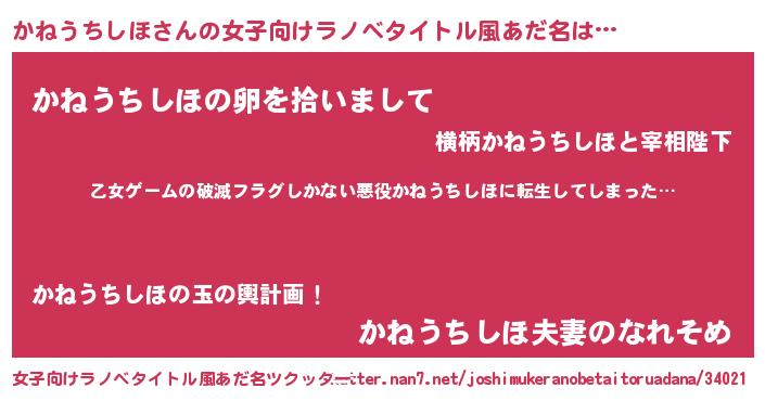 | 意味不明あだ名 | 『住所不定無職かねうちしほ(10歳)』 |