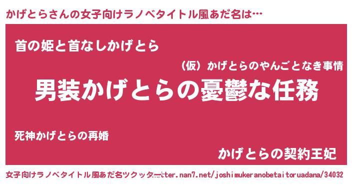 | 伝説のあだ名 | 『古文書に記された吟遊詩人かげとら』 |
