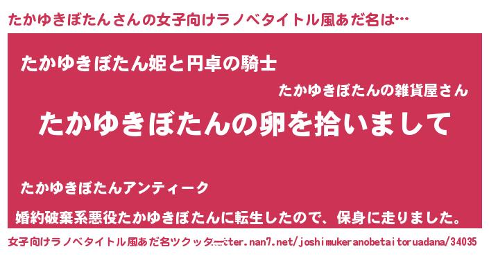 | 男性向けラノベタイトル風あだ名 | 『ダンジョンにたかゆきぼたんを求めるのは間違っているだろうか』 |