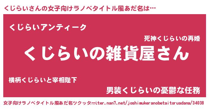 | 男性向けラノベタイトル風あだ名 | 『やはりくじらいの青春ラブコメはまちがっている 』 |