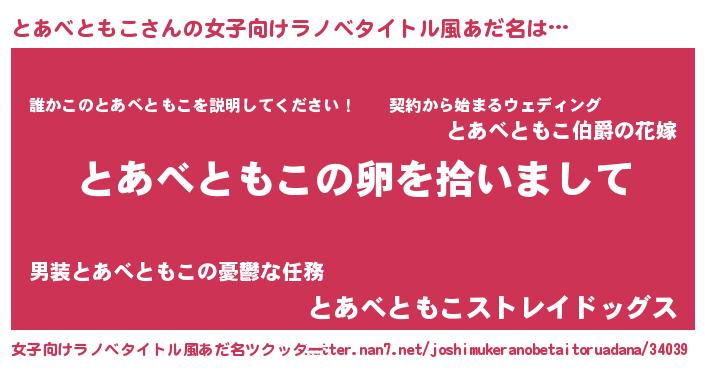 | 男性向けラノベタイトル風あだ名 | 『ダンジョンにとあべともこを求めるのは間違っているだろうか』 |