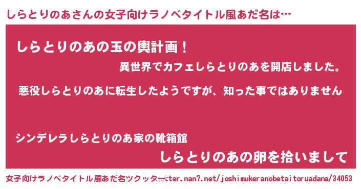 | 男性向けラノベタイトル風あだ名 | 『この素晴らしい世界にしらとりのあを!』 |
