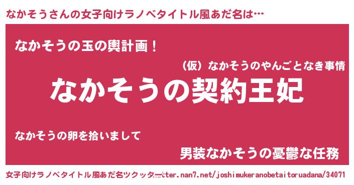 | 意味不明あだ名 | 『永久保存なかそう』『ペロリンなかそう』 |