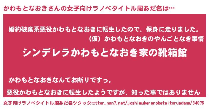 | 男性向けラノベタイトル風あだ名 | 『緋弾のカワモトナオキ』 |