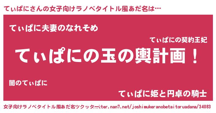 | ヒーロー風カッコイイあだ名 | 『慈愛の使者てぃぱに』『ネオティパニ』 |
