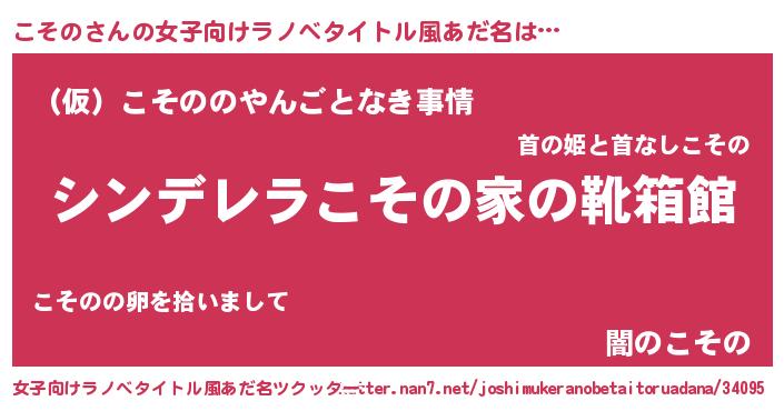 | 男性向けラノベタイトル風あだ名 | 『冴えないこそのの育てかた』 |