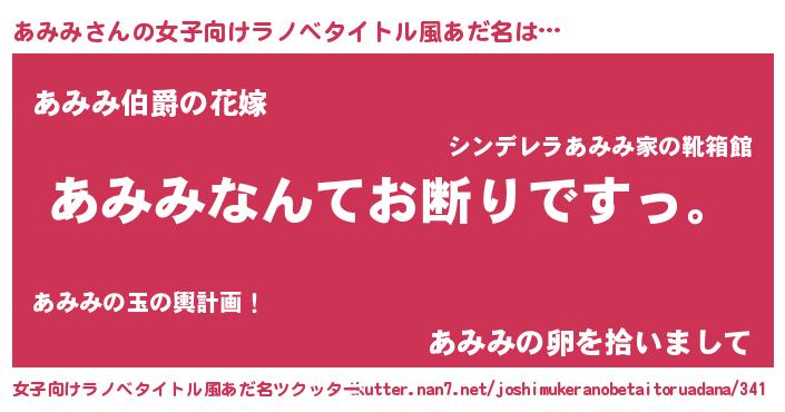 | 男性向けラノベタイトル風あだ名 | 『魔法科高校のあみみ』 |