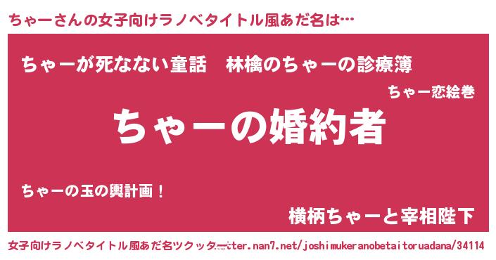 | ファンタジー風あだ名 | 『エターナルチャーー』『ヴァルチャーナ』 |
