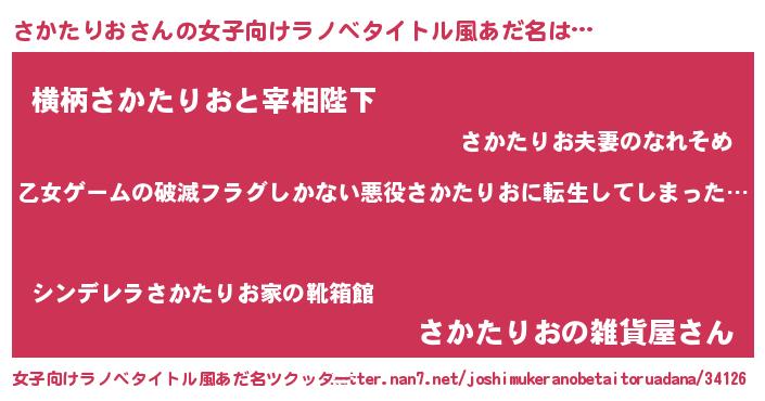 | 意味不明あだ名 | 『住所不定無職さかたりお(4歳)』 |