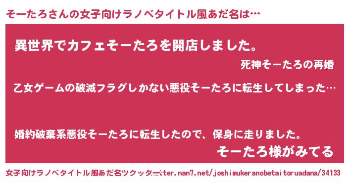 | 意味不明あだ名 | 『住所不定無職そーたろ(50歳)』 |