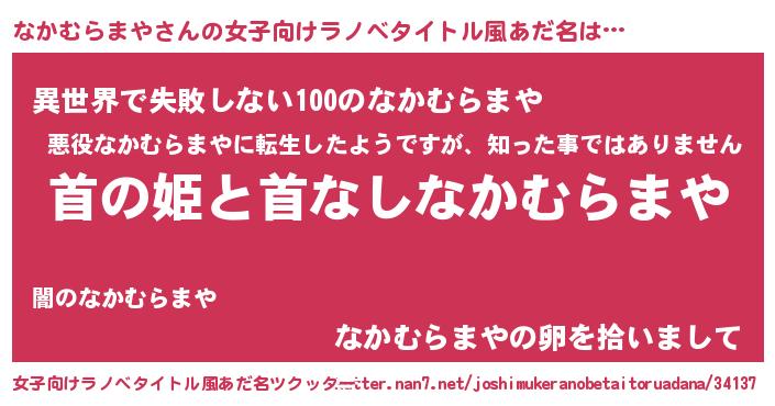 | 男性向けラノベタイトル風あだ名 | 『はたらくなかむらまやさま!』 |