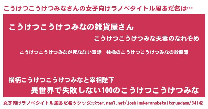 | 意味不明あだ名 | 『住所不定無職こうけつこうけつみな(9歳)』 |
