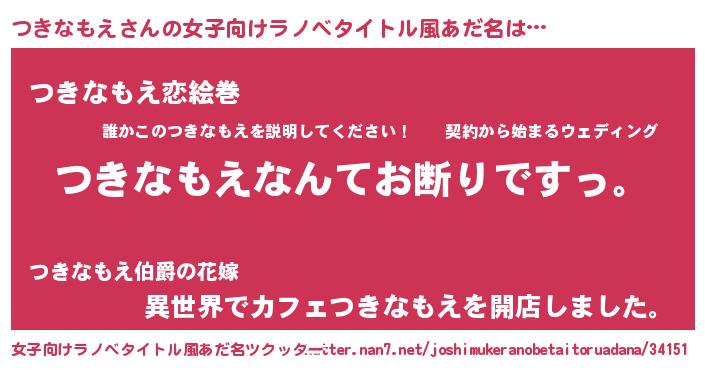 | ヘコむあだ名 | 『つきなもえ(笑)』『つきにゅー』 |