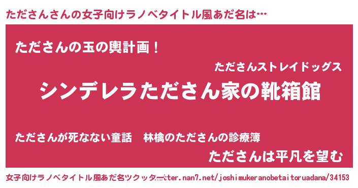 | 胡散臭い通販商品みたいなあだ名 | 『信頼と実績のサプリメント…その名も「たださん」』 |