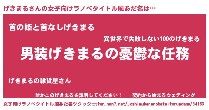 | 男性向けラノベタイトル風あだ名 | 『うちのげきまるが世界を掌握している!』 |