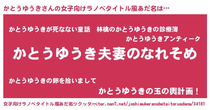 | 男性向けラノベタイトル風あだ名 | 『おまえをオタクにしてやるから、俺をかとうゆうきにしてくれ! 』 |