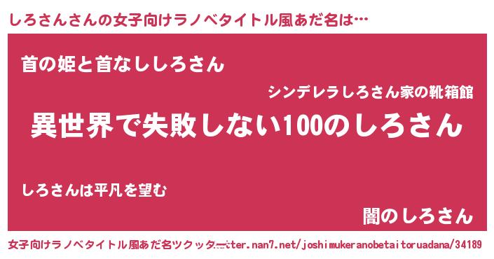 | 男性向けラノベタイトル風あだ名 | 『しろさんという概念が存在しない退屈な世界 』 |