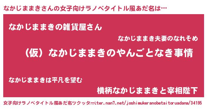 | 男性向けラノベタイトル風あだ名 | 『なかじままきの憂鬱』 |