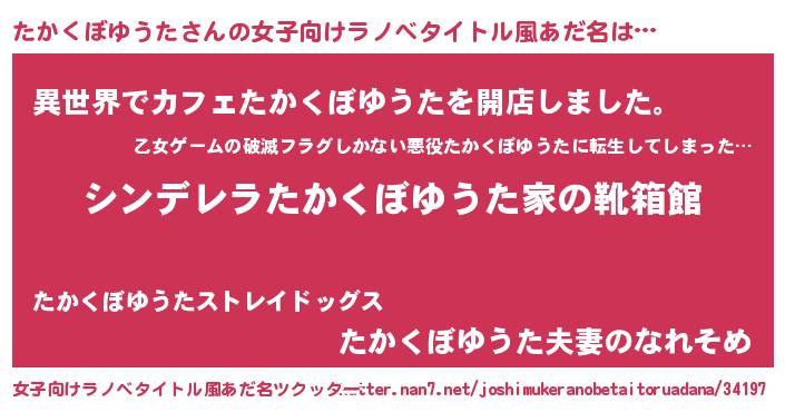 | 胡散臭い通販商品みたいなあだ名 | 『来世でも幸せになれる健康食品…その名も「たかくぼゆうた」』 |