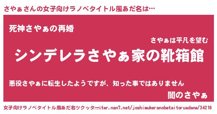 | 意味不明あだ名 | 『眠気覚ましガムさやぁ味』『自称さやぁ』 |