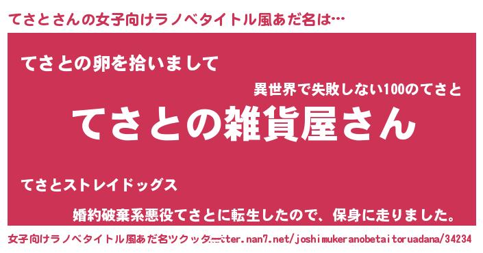 | 胡散臭い通販商品みたいなあだ名 | 『幸せが訪れる高級そうな絵画…その名も「てさと」』 |