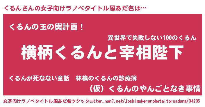 | 男性向けラノベタイトル風あだ名 | 『くるんに滅ぼされるだけの簡単なお仕事です』 |