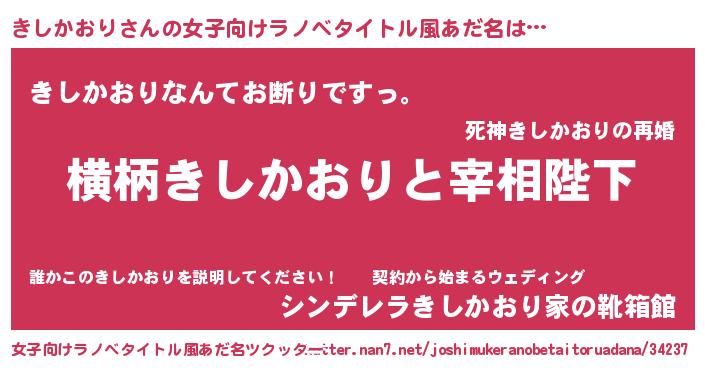 | 男性向けラノベタイトル風あだ名 | 『きしかおりに滅ぼされるだけの簡単なお仕事です』 |