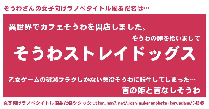 | 男性向けラノベタイトル風あだ名 | 『Re:そうわから始める異世界生活』 |