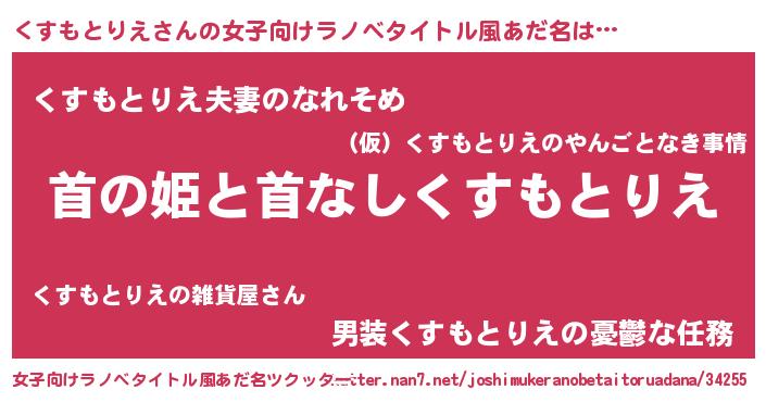 | 男性向けラノベタイトル風あだ名 | 『はたらくくすもとりえさま!』 |