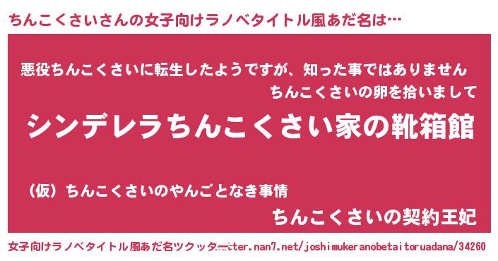 | 意味不明あだ名 | 『住所不定無職ちんこくさい(95歳)』 |
