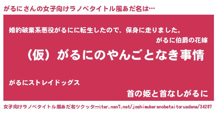 | 胡散臭い通販商品みたいなあだ名 | 『必ず成功する水晶球…その名も「がるに」』 |